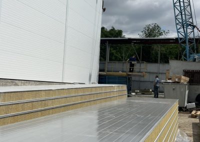 Легкость и скорость монтажа: Сэндвич-панели поставляются готовыми к установке, что существенно сокращает сроки строительства. Небольшой вес не требует мощного фундамента и позволяет использовать облегченные несущие конструкции.